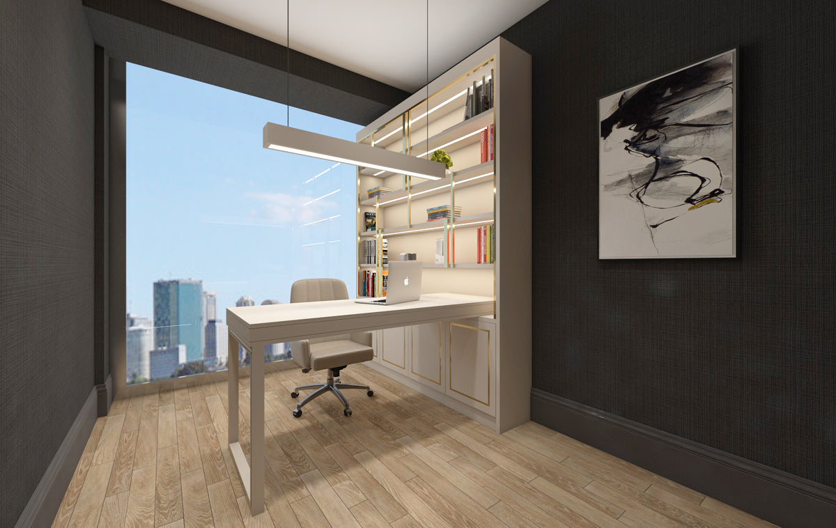 Every element—from the library walls to the workstations—was designed to balance prestige with practicality, transforming the office into a statement of refined design and professional excellence.