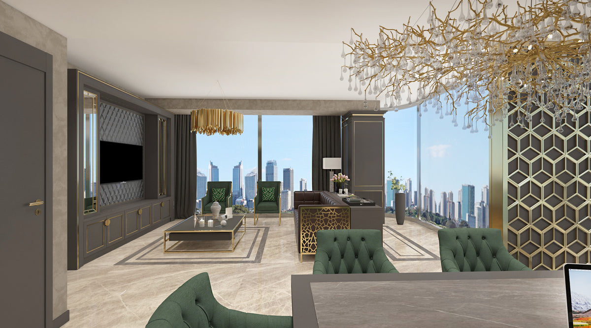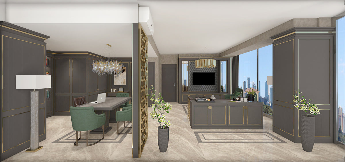 This Design Office project embodies a refined sense of sophistication through its seamless blend of classic luxury and modern function. Cuzine executed the full interior scope, from spatial layout and design detailing to custom furniture and lighting integration.